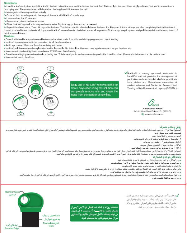 Daily use of the No-Lice anti-lice comb after using the solution, and continuing it for 3 to 5 days, can lead to the complete removal of resistant eggs and cleansing the head from the risk of new lice.
